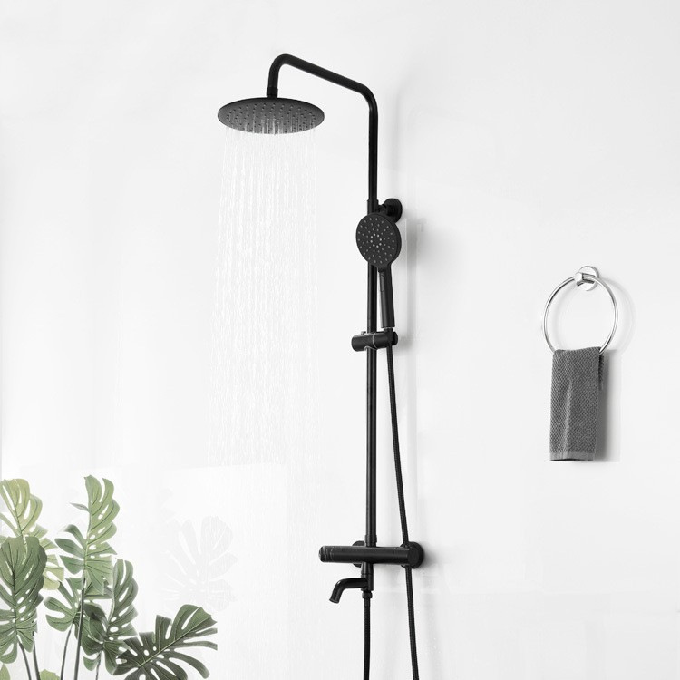 Matte Black Stainless Steel Thermostatic Round Bath Mixer Shower Faucet Set for Bathroom