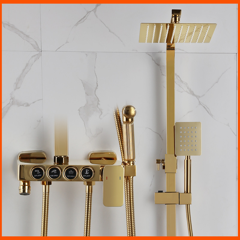 YMC Gold Digital Bathroom Faucet Intelligent Brass Shower Set With Hot Cold Waterfall Tap Jet & Massage Spray Patterns Hotels